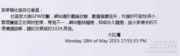 草榴社區(qū)官方通告:因受GFW攻擊,網(wǎng)站或永久關(guān)閉