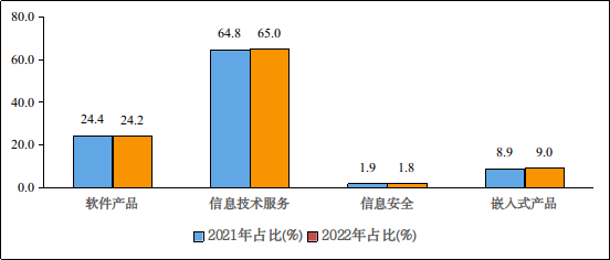 △2021年和2022年1—11月份軟件業(yè)分類收入占比情況