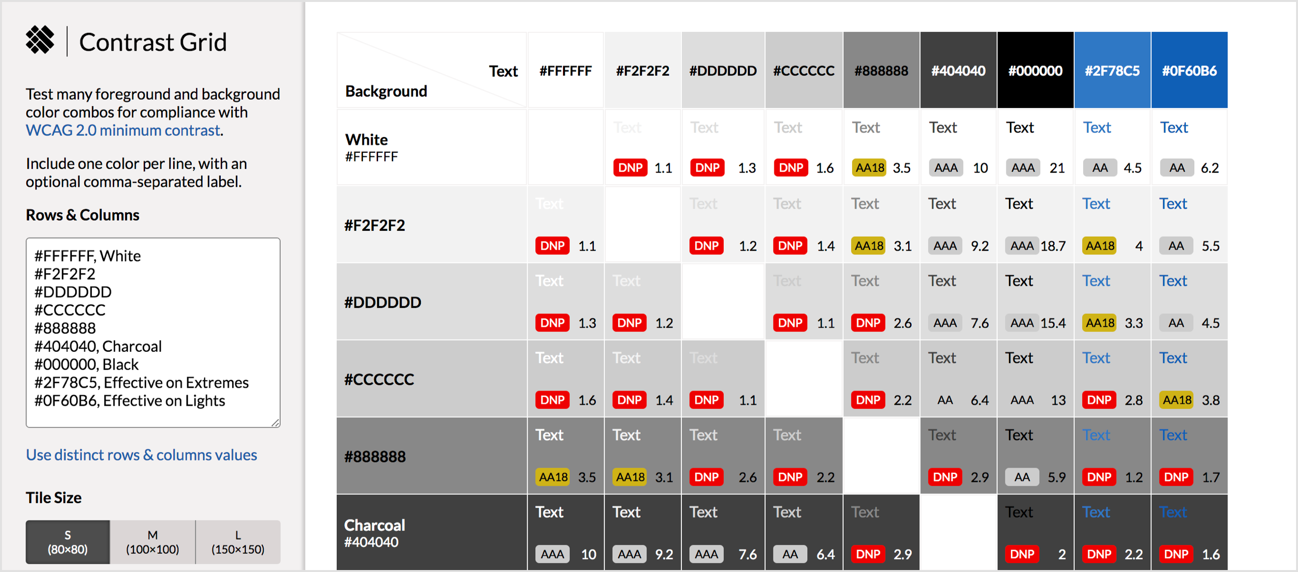 確保顏色對(duì)比度符合 WCAG 2.0(內(nèi)容無(wú)障礙指南)標(biāo)準(zhǔn),是信息無(wú)障礙中非常重要的一步。如果我們?cè)谠O(shè)計(jì)當(dāng)中做到這一點(diǎn),也可以保障低視力人士能更好地獲取信息。 根據(jù) WCAG 2.0 的標(biāo)準(zhǔn):