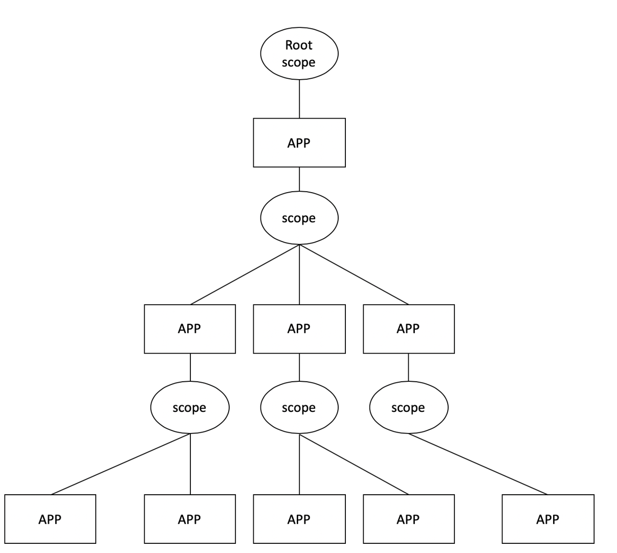 scope概念是指一個應(yīng)用起來之后,會創(chuàng)建一個scope(作用域),這個 scope 保存了該應(yīng)用的一些運行時信息,同時通過了通信的接口方法。一個應(yīng)用可能會有多個子應(yīng)用,這些子應(yīng)用都有自己的 scope,上下級應(yīng)用之間可以通過scope完成通信,比如 parent_app 可以給 child_app_1 和 child_app_2 下發(fā)一個指令,接到這個指令后,兩個子應(yīng)用執(zhí)行自己的邏輯。child_app_2 可以向 parent_app 發(fā)送一個指令,而 parent_app 再把這個指令轉(zhuǎn)發(fā)給了 child_app_1,這樣就完成了兩個子應(yīng)用之間的通信。這像極了 react 組件通過 props 傳遞數(shù)據(jù)的模式。 rootScope 是一個特殊的scope,它對應(yīng)的是基座應(yīng)用,是應(yīng)用樹的頂點。由于我把 scope 設(shè)計為可以廣播消息的訂閱/發(fā)布對象,所以,利用 rootScope 可以完成跨層應(yīng)用間的直接通信(雖然不推薦)。